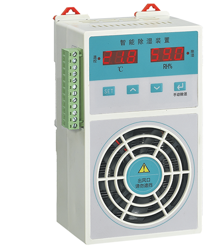 智除湿装置是用半导体制冷除湿方式,主动将密闭空间的潮湿空气在风扇的作用下吸入除湿风道,空气中的水汽经过半号体制冷机构后冷凝咸水,再通过导水管排出柜体,可以达到很好的除湿效果。通过减低空气中含水量,使相对湿度和绝对湿度同时下降,几乎不提高温度,不产生温差带来的负面影响,从根本上杜绝或减少了事故的发生,也不会因高温而加速柜内器件及柜体的老化。智能型除温装置把被动防止凝露方式,改为主动引导凝露,有效的防止柜内设备老化、绝缘强度降低、二次端子击穿、材料霉变及钢结构件锈蚀等安全隐患,保证电网安全运行。